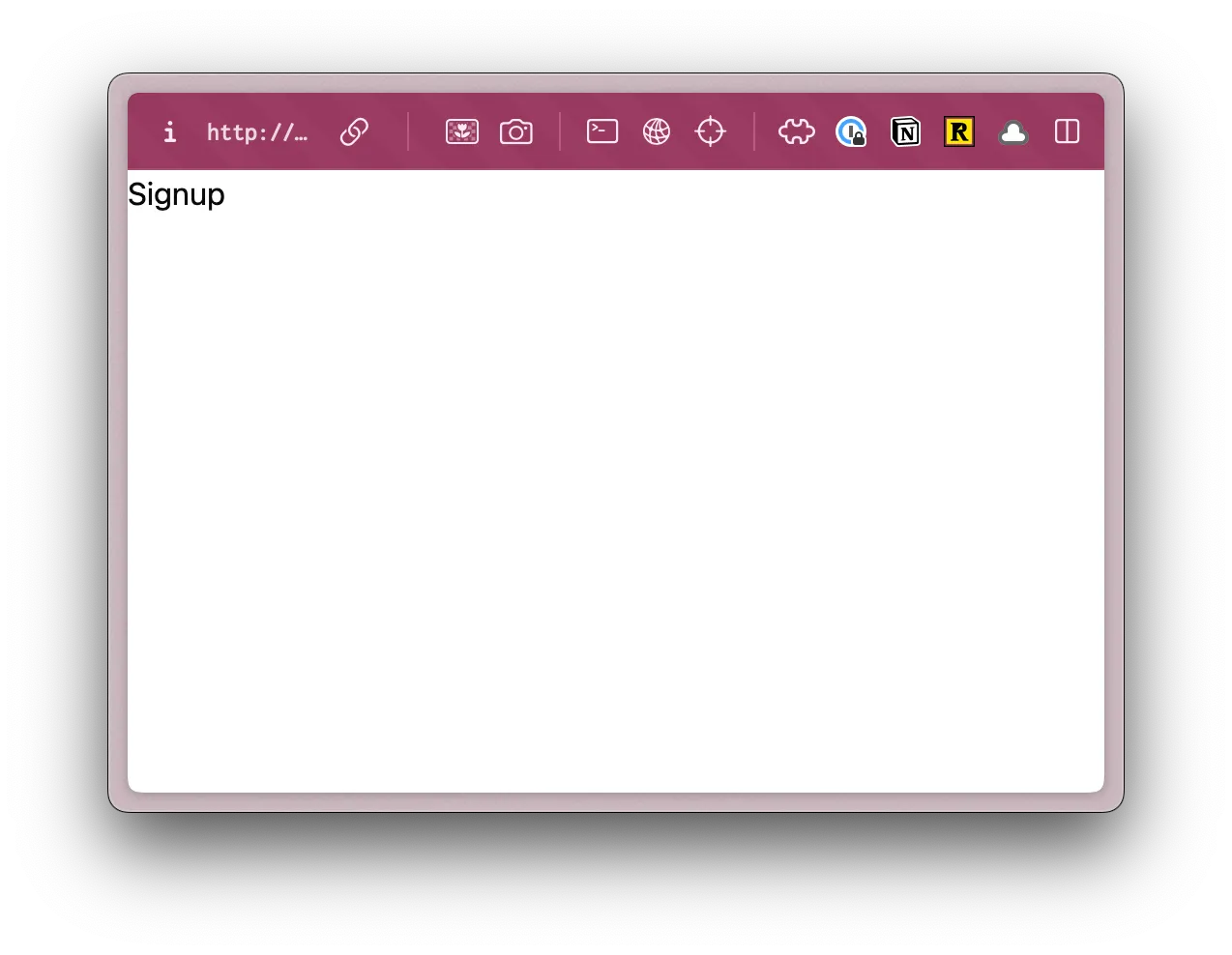 return new Response(null, { status: 302, headers: response.headers, }); }),];Within our browser, let’s go to http://localhost:5173/user/signup and you should see:
