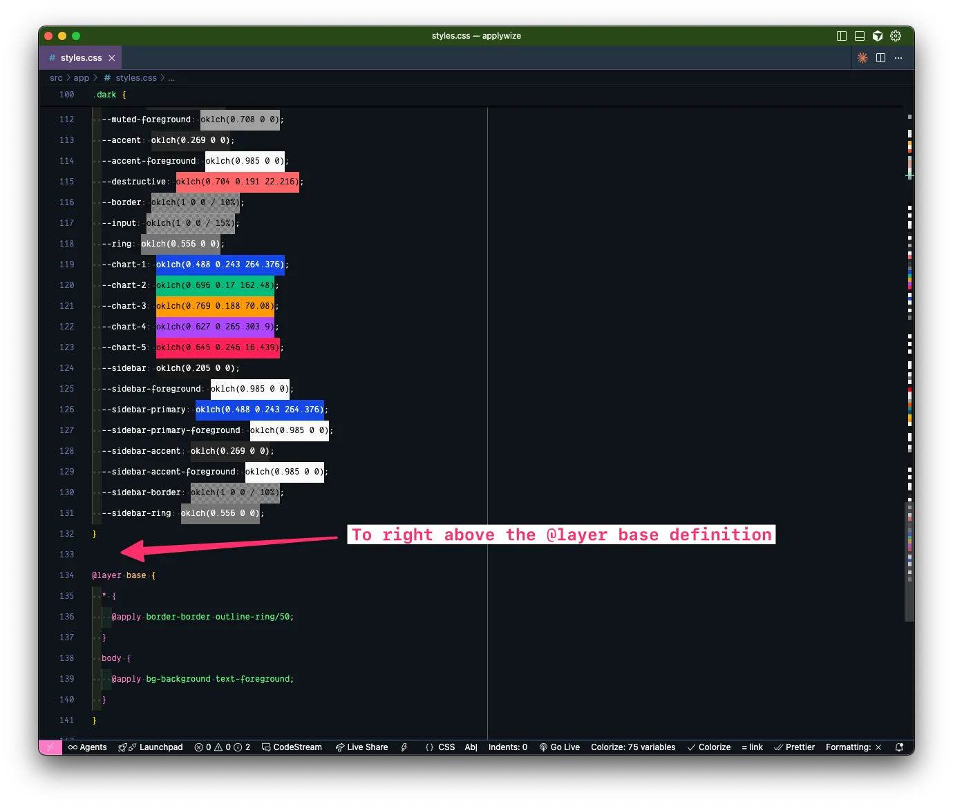 inputwith atypeoftextwithinput[type="text"]. Since, we're styling a base tag, we can stick this in thebaselayer. - We want to add a border with a color of border