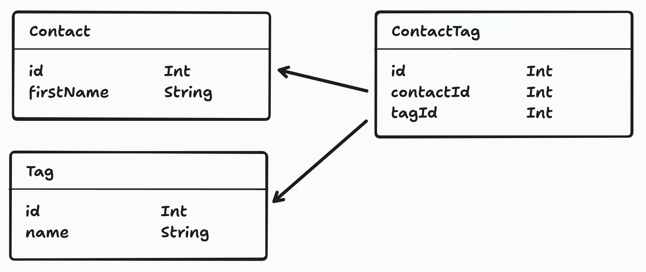 model Contact { id String @id @default(uuid()) firstName String lastName String email String? role String?