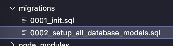 0001_init.sqlwas generated the first time we ranpnpm dev.0002_setup_all_database_models.sqlwas generated when we ranpnpm migrate:new "setup all database models".